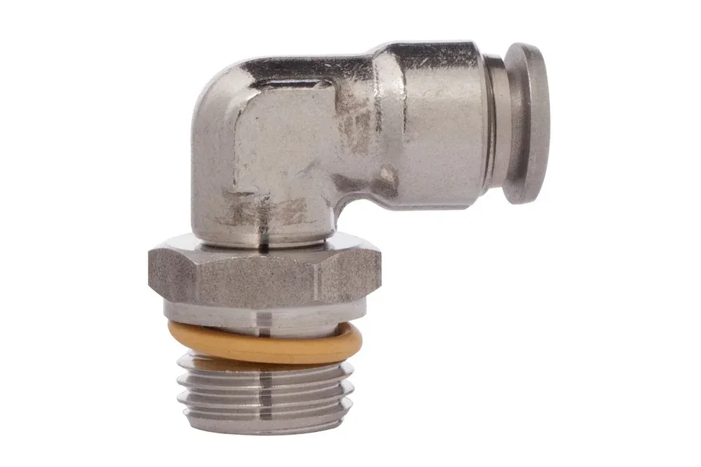 Високоякісне кутове з’єднання 90° з зовнішньою паралельною різьбою (BSP або M5), виконане повністю з нержавіючої сталі AISI 316L, серія 60115. Відсутність пластикових елементів та ущільнення з вітону забезпечують високу стійкість до дії корозійних факторів і хімічних речовин. Використовується в хімічній, харчовій, фармацевтичній, електронній промисловості та медицині. Матеріал: сталь AISI 316L. Робоча температура: від -15°C до +225°C. Робочий тиск: 15 бар. Вакуум: 0,99 бар. Ущільнення: вітон.