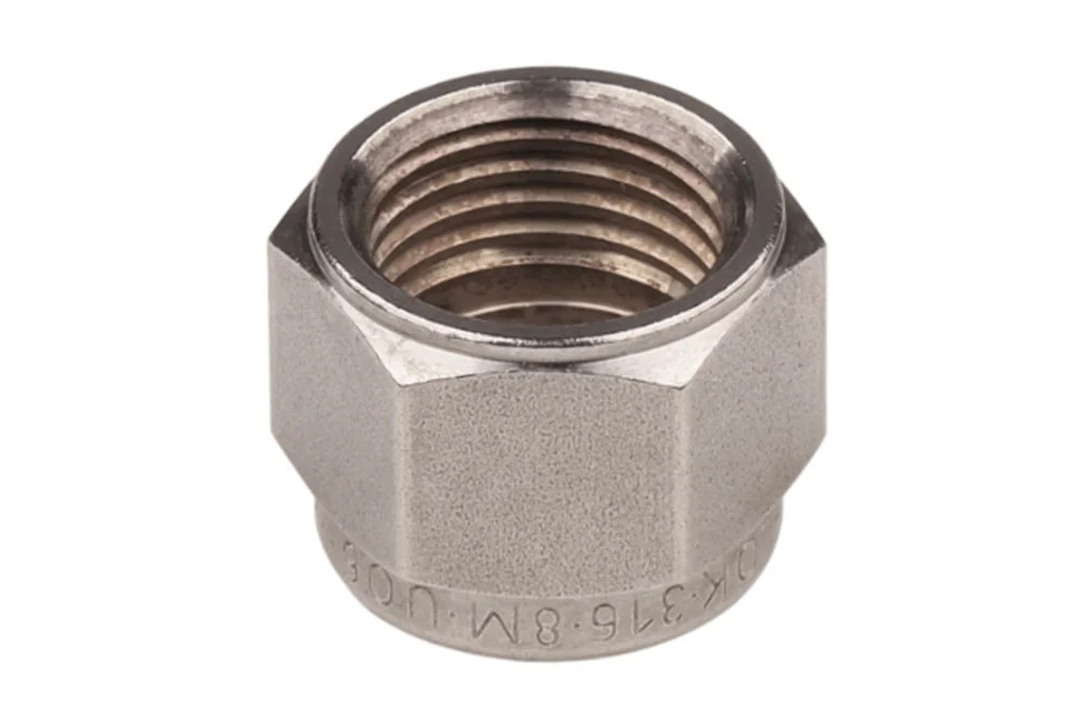 Гайка для з’єднувача типу LET-LOK®, призначена для трубки з метричним діаметром. Матеріал: сталь AISI 316.