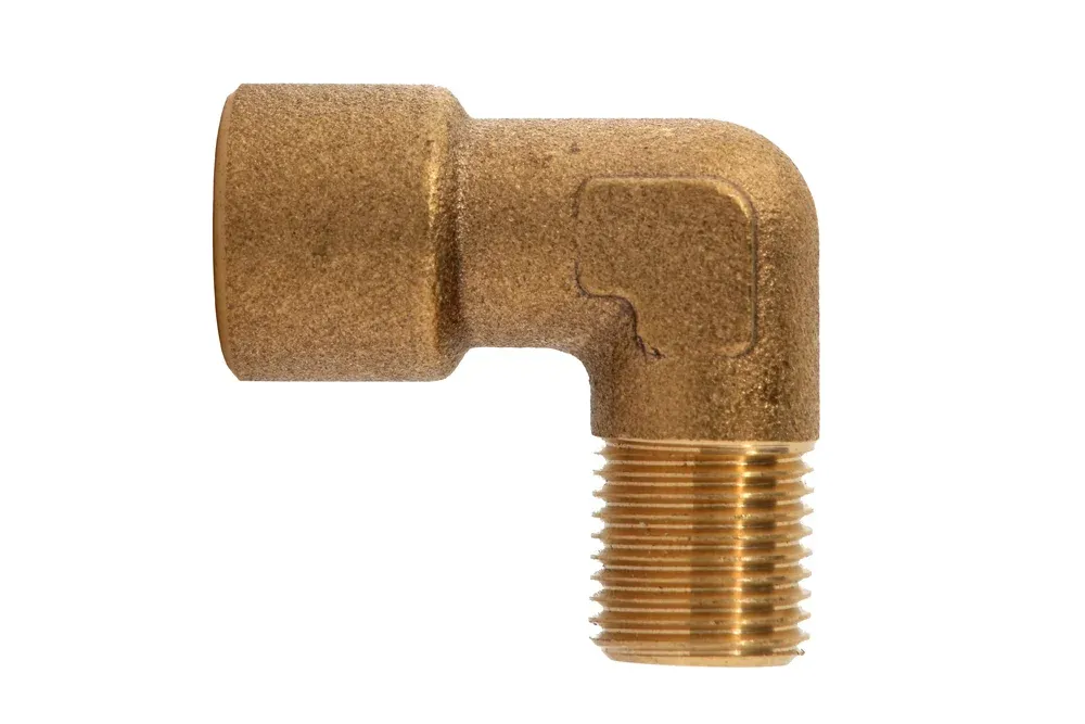 Коліно 90° латунне з внутрішньою та зовнішньою різьбою BSP. Матеріал: латунь. Робочий тиск: до 63 бар. Робоча температура: від -10°C до +90°C.