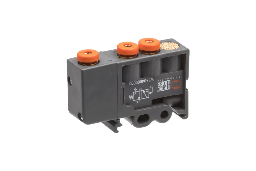 Логічний елемент NOT-негація. Керування за допомогою стисненого повітря, скидання за допомогою механічної пружини. Монтаж у будь-якому положенні. Матеріал: корпус – пластик, шток – алюміній, ущільнення – NBR. Номінальний потік: 100 Нл/хв для 6 бар при падінні тиску 1 бар. Вбудовані штекерні з’єднання для трубки 4 мм. Робоча температура: від -10°C до +60°C. Робочий тиск: від 0 до 8 бар. Керуючий тиск: від 1,5 до 8 бар.