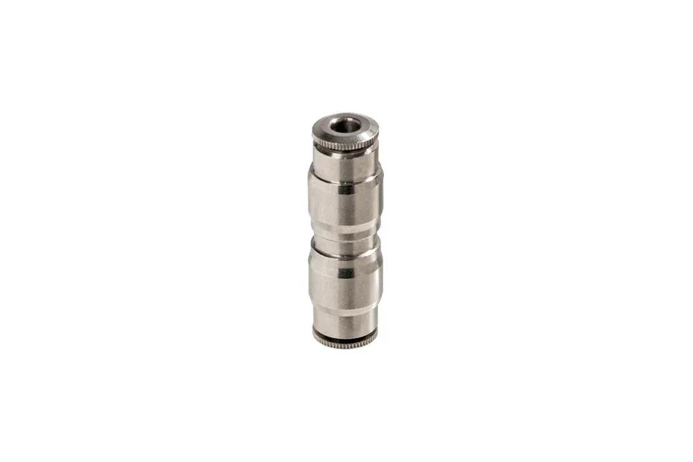 Пряма з’єднувальна муфта PUSH-IN для шланга з зовнішньою різьбою BSPT або метричною. Призначена для використання в техніці змащування. Рекомендованим матеріалом для з’єднуваних шлангів є поліамід. Матеріал корпусу: нікельована латунь. Матеріал ущільнення: о-ринг (HNBR). Робоча температура: від -30°C до +150°C. Максимальний робочий тиск: 150 бар (для рідин), 30 бар (для повітря).