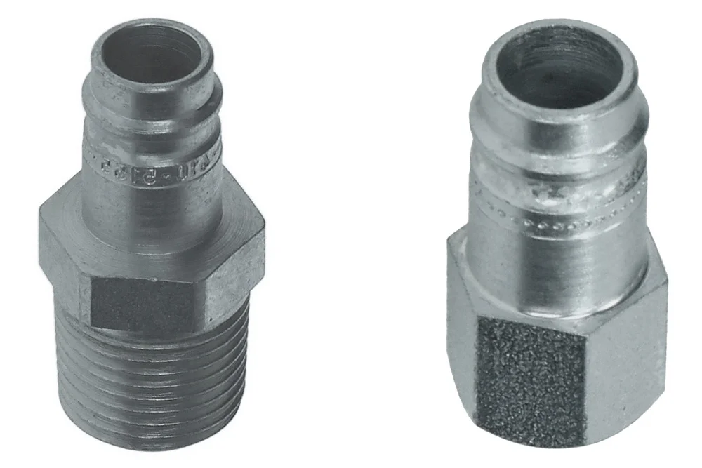 Штекер швидкороз’ємного з’єднання CEJN DN10,4 з зовнішньою різьбою BSPT, NPT або з внутрішньою різьбою BSP, NPT. Широко використовуються в промисловості, головним чином в пневматичних системах. Виготовлені відповідно до стандарту Eurostandard DN10. Робочий тиск: 16 бар. Матеріал: загартована оцинкована сталь.