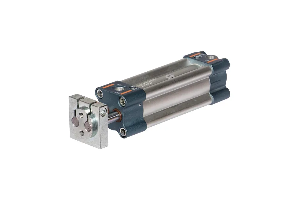 Циліндр двосторонньої дії з наскрізним подвійним штоком може використовуватися як виконавчий елемент у системах, де потрібен захист від обертання. В осьових розмірах відповідає стандарту ISO 15552. Стандартна конфігурація з магнітом і амортизацією. Діаметр поршня: Ø 32, 40, 50, 63, 80, 100 мм. Максимальна рекомендована довжина ходу: від 25 до 500 мм. Робочий тиск: до 10 бар. Ущільнення: поліуретан. Робоче середовище: фільтроване стиснене повітря, змащене або незмащене. Сили, що створюються при 6 бар висування/повернення: Ø 32 – 434/350 Н, Ø 40 – 678/597 Н, Ø 50 – 1060/940 Н, Ø 63 – 1683/1471 Н, Ø 80 – 2714/2295 Н, Ø 100 – 4241/3812 Н. Температура роботи: від -10°C до +80°C.