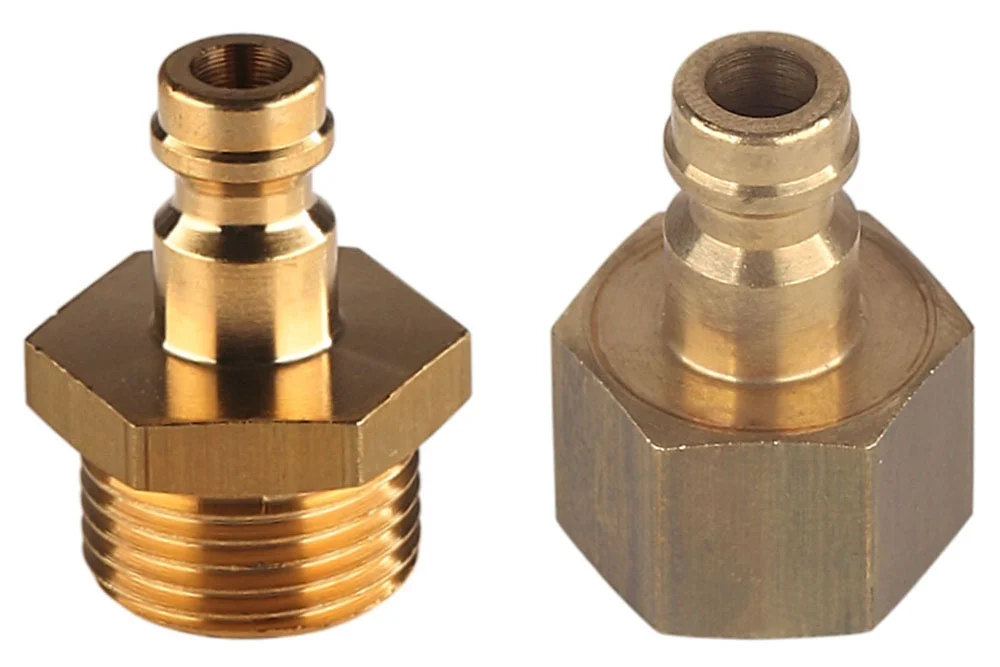 Штекер швидкороз’ємного з’єднання Євростандарт MINI DN 5, без клапана, з зовнішньою або внутрішньою різьбою BSP, широко використовується в промисловості (для повітря, азоту та інших негорючих газів), де потрібні невеликі розміри та висока пропускна здатність при малому падінні тиску. Сумісний з RECTUS 21 та швидкороз’ємними з’єднаннями з профілем EURO DN 5 інших виробників. Робочий тиск: 35 бар. Робоча температура: від -20°C до +100°C. Матеріал: латунь.