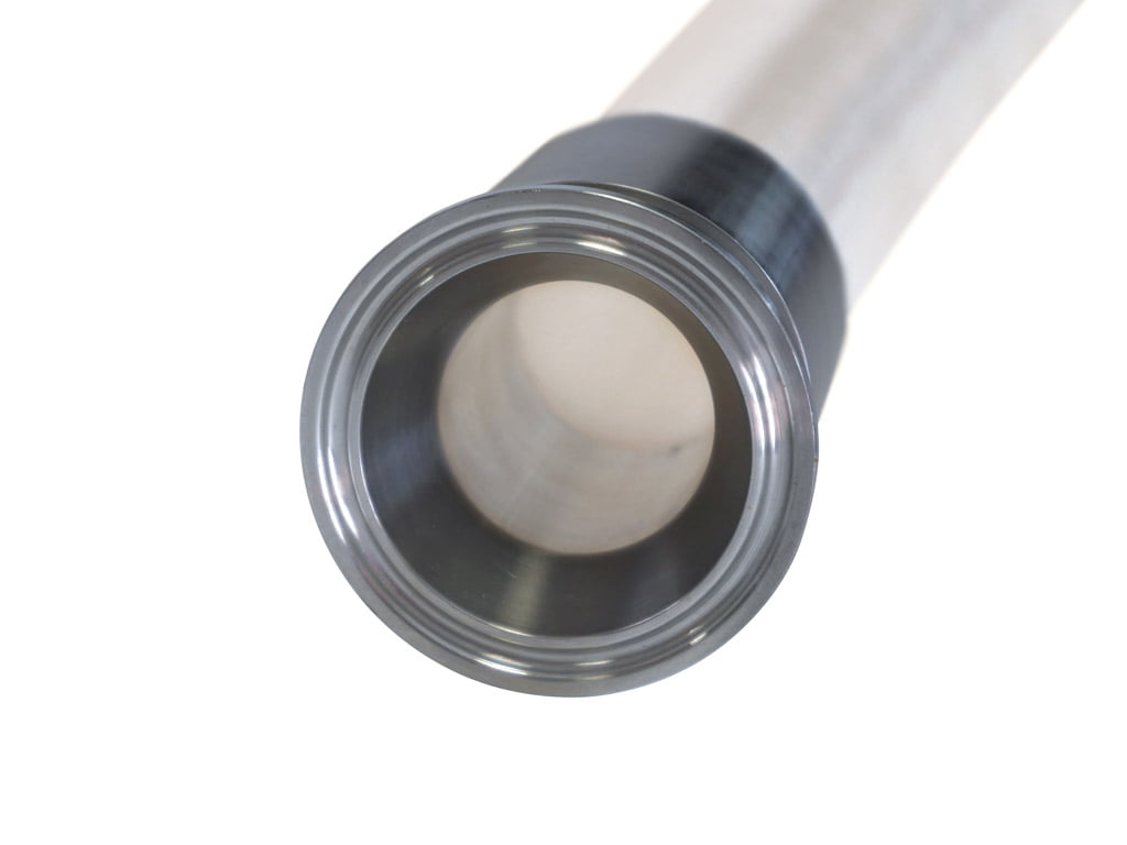 Опис: Високоякісний гідрофобний шланг Pharmatech DN 32 мм був використаний для передачі діючих речовин при виробництві лікарських засобів. Гладкий зовнішній шар шлангу запобігає прилипання бруду. Стерилізацію трубопроводу можна проводити парою при 135°С, аргоном або кобальтом. Шланг має закінчення – Triclover. Готовий рукав виготовляється за допомогою затискних втулок з нержавіючої сталі.