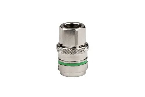Оберіть опції Цей товар має кілька варіантів. Параметри можна вибрати на сторінці товару / ДетальнішеГніздо швидкороз'ємного з'єднання CEJN NON DRIP (безвитокове) з клапаном, призначене для передачі рідин (вода, олія, хімікати тощо). Плоскі контактні поверхні мінімізують можливий витік рідин та запобігають включенню повітря, одночасно дозволяючи легко підтримувати швидкороз'ємне з'єднання в чистоті. Гнізда та штекери у версіях з відсічним клапаном або без нього, з можливістю їх чергування, дозволяють отримати три конфігурації швидкороз'ємного з'єднання: з вільним проходом, односторонньо відсічне (гніздо повинно мати клапан) і двосторонньо відсічне (безвитокове). Доступні заглушки, що захищають швидкороз'ємне з'єднання від забруднень, коли воно роз'єднане. Для забезпечення додаткової безпеки, коли неприпустима заміна в з'єднанні гніздо-штекер, можливе кодування швидкороз'ємного з'єднання кольорами: зеленим (стандарт) та опціонально чорним, синім, червоним, білим і жовтим або так зване кодування ключем, де гніздо і штекер мають додаткові канавки і виступи, що дозволяють тільки правильно підібрані з'єднання швидкороз'ємного з'єднання. Матеріал: нікельована латунь. Ущільнення: NBR, Viton, EPDM. Робочий тиск: 20 бар. Температура роботи: від -15°C до +205°C, в залежності від типу ущільнення.