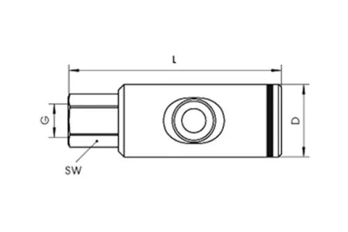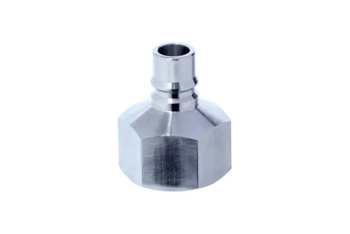 Оберіть опції Цей товар має кілька варіантів. Параметри можна вибрати на сторінці товару / ДетальнішеГніздо швидкороз'ємного з'єднання Gromelle типу ISO 6150B DN 8 з внутрішнім різьбленням BSP, компактної конструкції та дуже малої маси, для повітря. Робочий тиск: 16 бар. Робоча температура: від -20°C до +100°C. Продуктивність: 700 л/хв, Pe = 6 бар, Δp = 0,6 бар. Матеріал: дюралюміній (корпус гнізда), нікельована латунь (з'єднання), загартована сталь (кнопка), оцинкована сталь (клапан). Ущільнення: NBR.