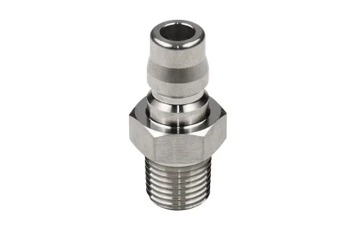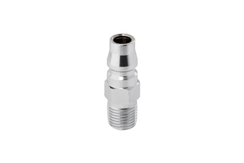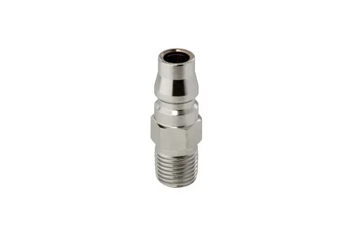 Оберіть опції Цей товар має кілька варіантів. Параметри можна вибрати на сторінці товару / ДетальнішеШтекер швидкороз'ємного з'єднання Gromelle типу ISO 6150B DN 5,5 з зовнішньою різьбою BSPT компактної конструкції та дуже малої маси, для повітря. Робочий тиск: 16 бар. Робоча температура: від -20°C до +100°C. Продуктивність: 700 л/хв, Pe = 6 бар, Δp = 0,6 бар. Матеріал: нікельована латунь (з'єднання), оцинкована сталь (штекер).