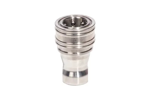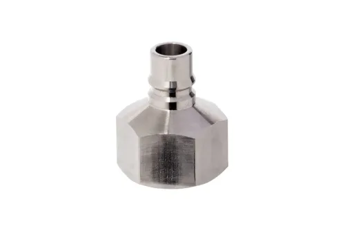 Оберіть опції Цей товар має кілька варіантів. Параметри можна вибрати на сторінці товару / ДетальнішеГніздо швидкороз'ємного з'єднання повнопрохідне Nitto Kohki серії TSP CUPLA з внутрішнім різьбленням BSPT з відмінною довговічністю, призначене для води, гідравлічних олив, пари, хімікатів, повітря та газів. Особливо рекомендується для рідин з високою в'язкістю, наприклад, мастил. Матеріал: сталь AISI 304. Робочий тиск: 75 бар (1/8", 1/4", 3/8"), 45 бар (1/2", 3/4", 1"), 30 бар (1.1/4", 1.1/2"), 20 бар (2"). Робоча температура: від -20°C до +80°C (NBR), від -20°C до +180°C (витон), від -40°C до +150°C (EPDM).