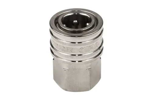 Оберіть опції Цей товар має кілька варіантів. Параметри можна вибрати на сторінці товару / ДетальнішеГніздо з запірним клапаном Nitto Kohki серії SP CUPLA типу A з внутрішнім різьбленням BSPT, що відзначається відмінною довговічністю, призначене для води, гідравлічних олив, пари, хімікатів, повітря та газів. Матеріал: сталь AISI 304. Робочий тиск: 75 бар (1/8", 1/4", 3/8"), 45 бар (1/2", 3/4", 1"), 30 бар (1.1/4", 1.1/2"), 20 бар (2"). Робоча температура: від -20°C до +80°C (NBR), від -20°C до +180°C (вітон).