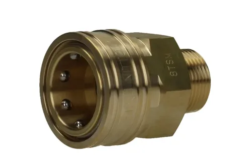 Оберіть опції Цей товар має кілька варіантів. Параметри можна вибрати на сторінці товару / ДетальнішеШтекер швидкороз'ємного з'єднання повнопрохідний Nitto Kohki серії TSP CUPLA з зовнішньою різьбою BSPT з відмінною довговічністю, призначений для води, гідравлічних олив, пари, хімікатів, повітря та газів. Особливо рекомендований для рідин з високою в'язкістю, наприклад, мастил. Матеріал: сталь AISI 304. Робочий тиск: 75 бар (1/8", 1/4", 3/8"), 45 бар (1/2", 3/4", 1"), 30 бар (1.1/4", 1.1/2"), 20 бар (2"). Робоча температура: від -20°C до +80°C (NBR).